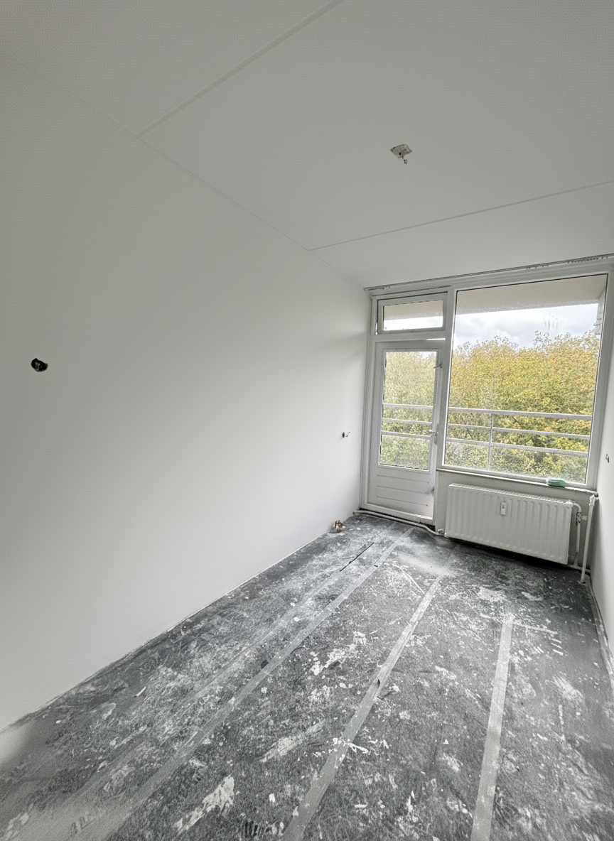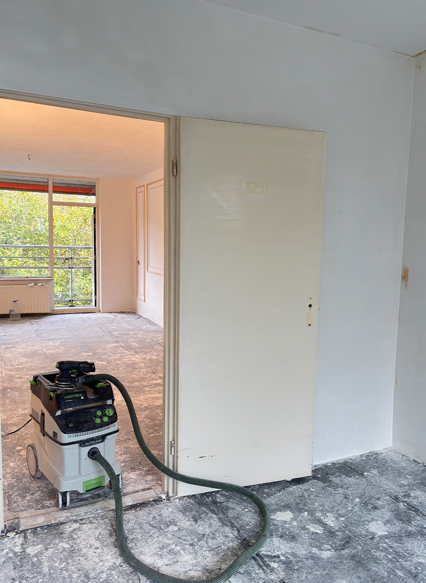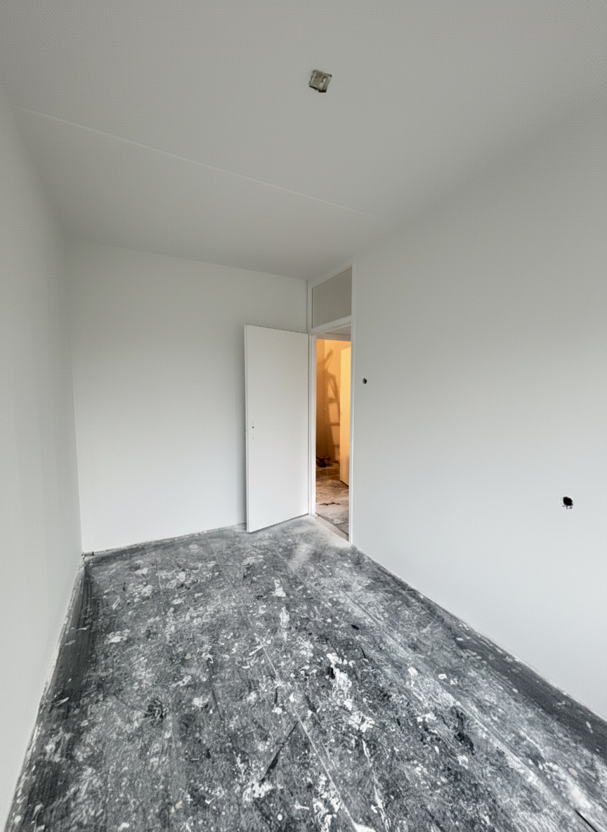 Na een droogtijd van ongeveer 10 dagen worden de muren en plafonds zorgvuldig voorbereid voor het schilderwerk.