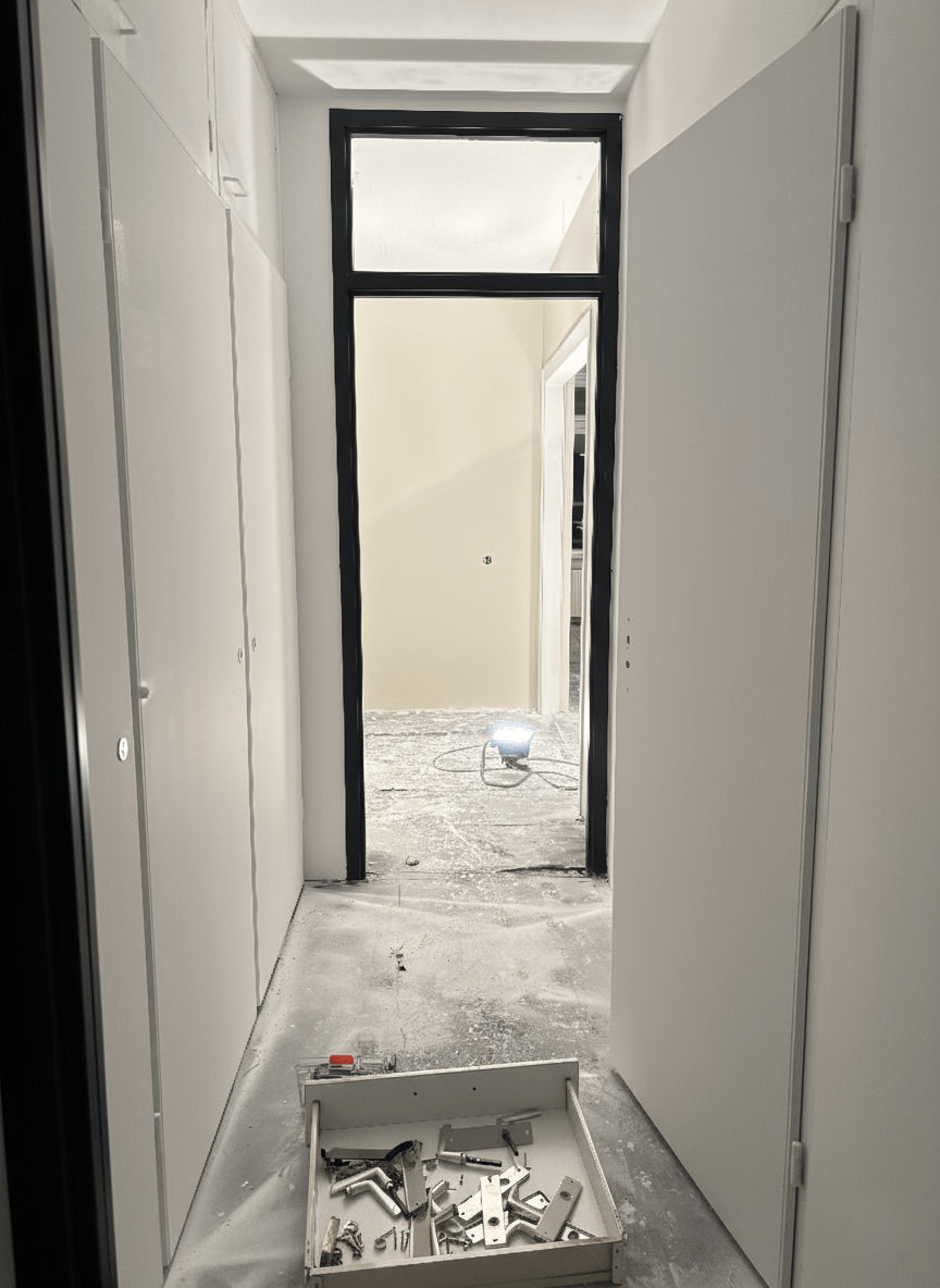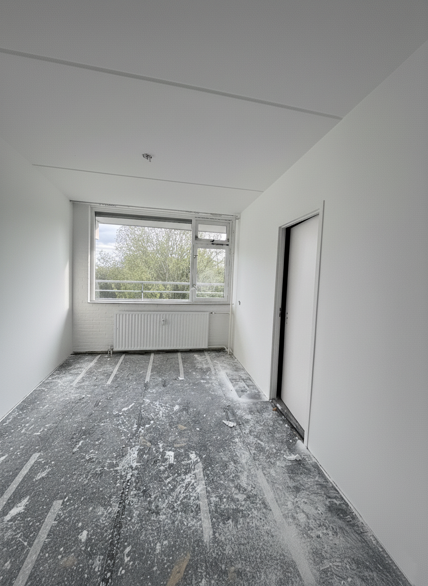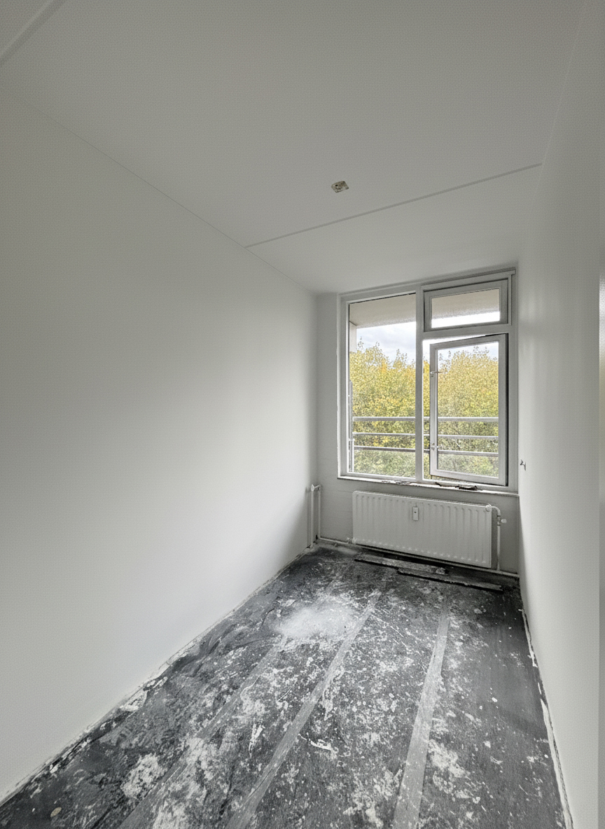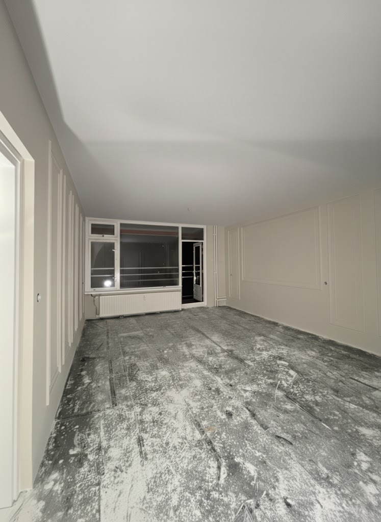 Na een droogtijd van ongeveer 10 dagen worden de muren en plafonds zorgvuldig voorbereid voor het schilderwerk.